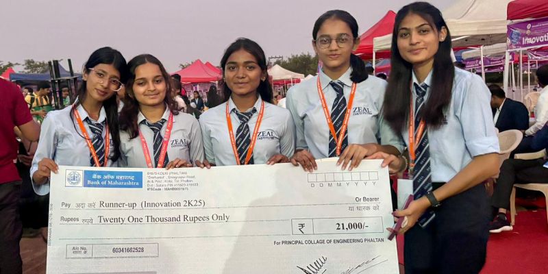Zeal Polytechnic, Pune achieved notable recognition when a student team secured Second Prize in the Polytechnic Students Group category at the National Level Project Competition “Innovation 2k25,” organized by Phaltan Education Society’s College of Engineering, Phaltan, on 09 October 2025. The team presented an innovative project titled “Smart Gloves for Sign Interpretation,” which employs sensorbased technology to translate sign language gestures into readable or audible output, thereby enhancing communication for hearing- and speech-impaired individuals. The project was highly appreciated by the judges for its innovation, social relevance, and practical implementation. The award winning team comprised Pradnya Vasant Dolas, Vaishnavi Santosh Kande, Kavyanjali Yogesh Chaudhari, Sakshi Suhas Pharande, and Lisha Shimpi, whose achievement reflects their dedication, creativity, and technical excellence.